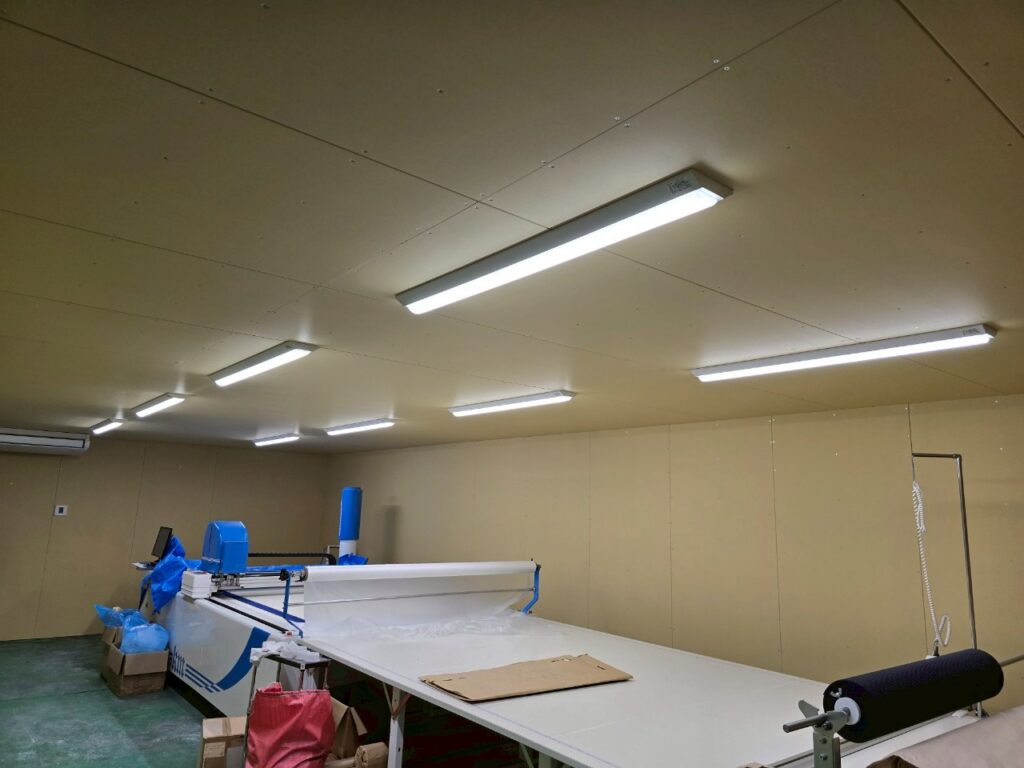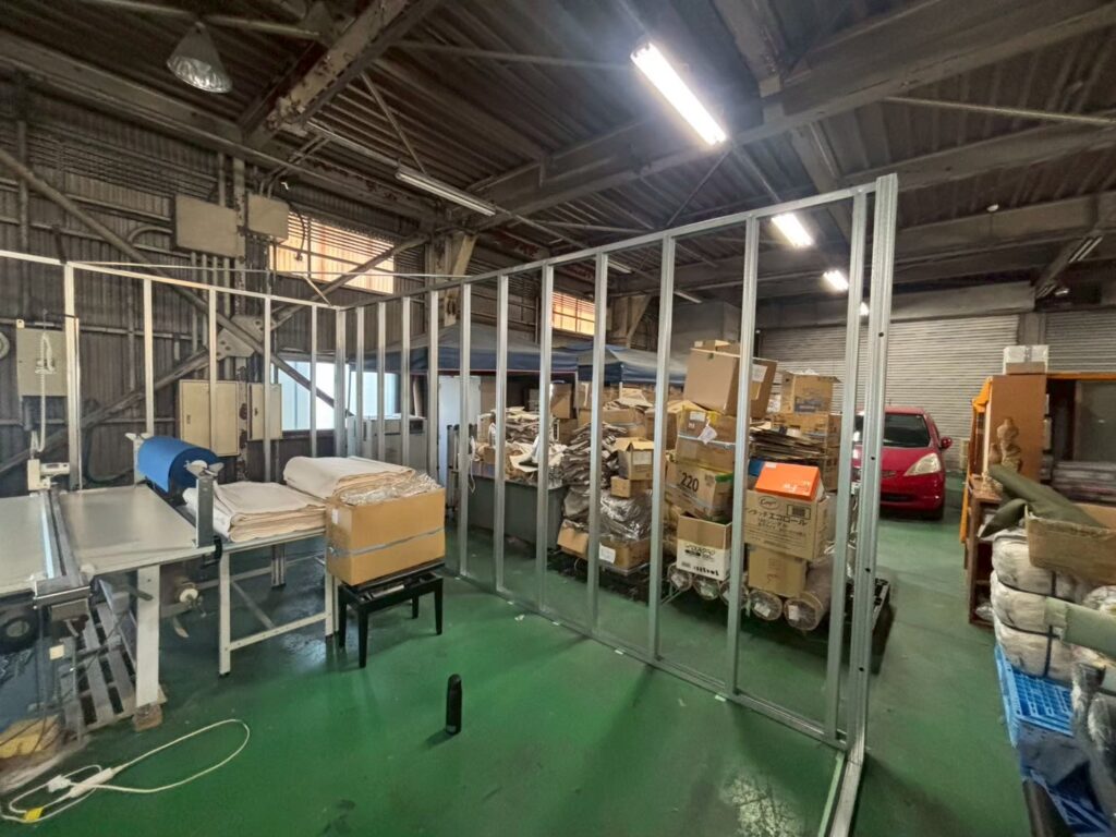 既存の工場スペース内に新たな間仕切り壁を設け、空調・照明・電気配線を含む事務所環境を整備しています。
