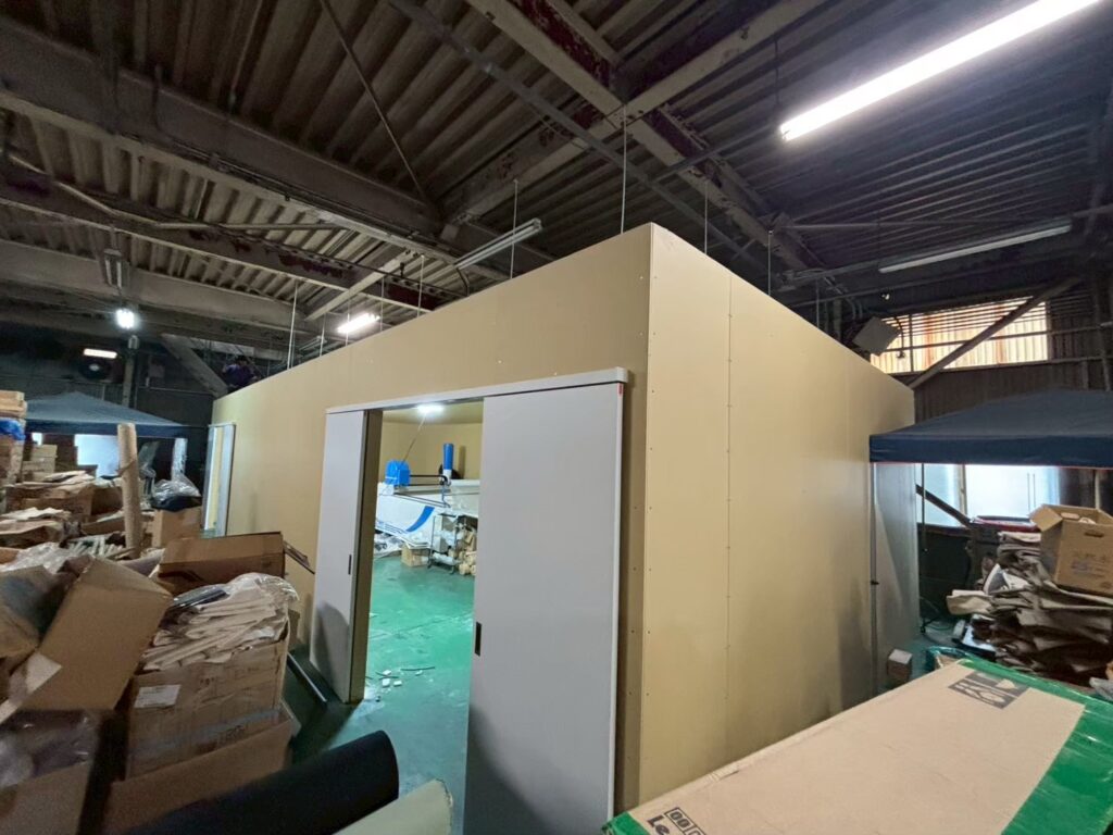 稼働中の工場内での施工だったため、安全対策と作業動線の確保を最優先に工事を進行しました。生産エリアへの影響を最小限に抑えながら、短期間で事務所スペースを増設。