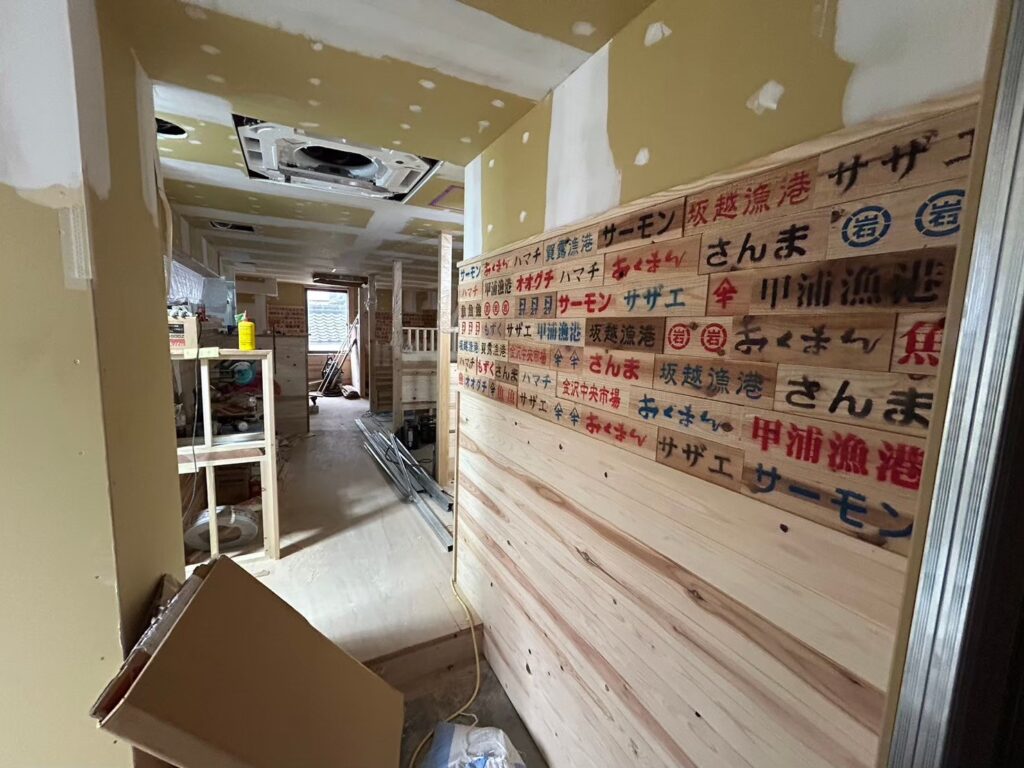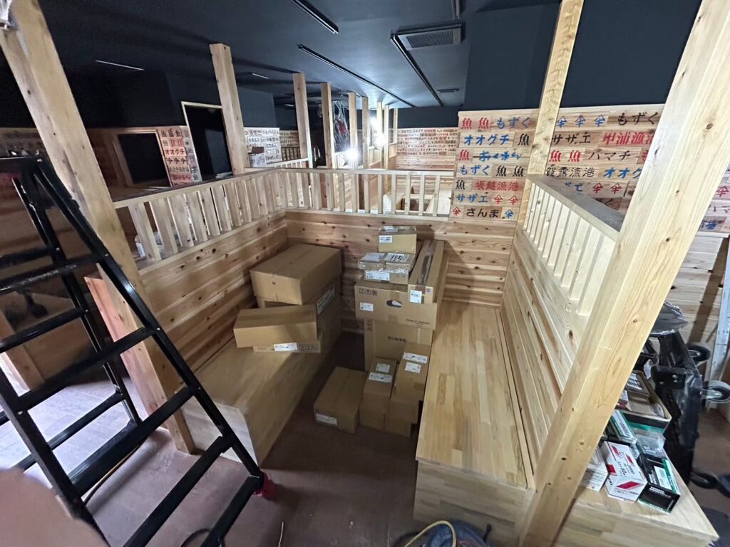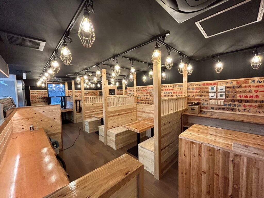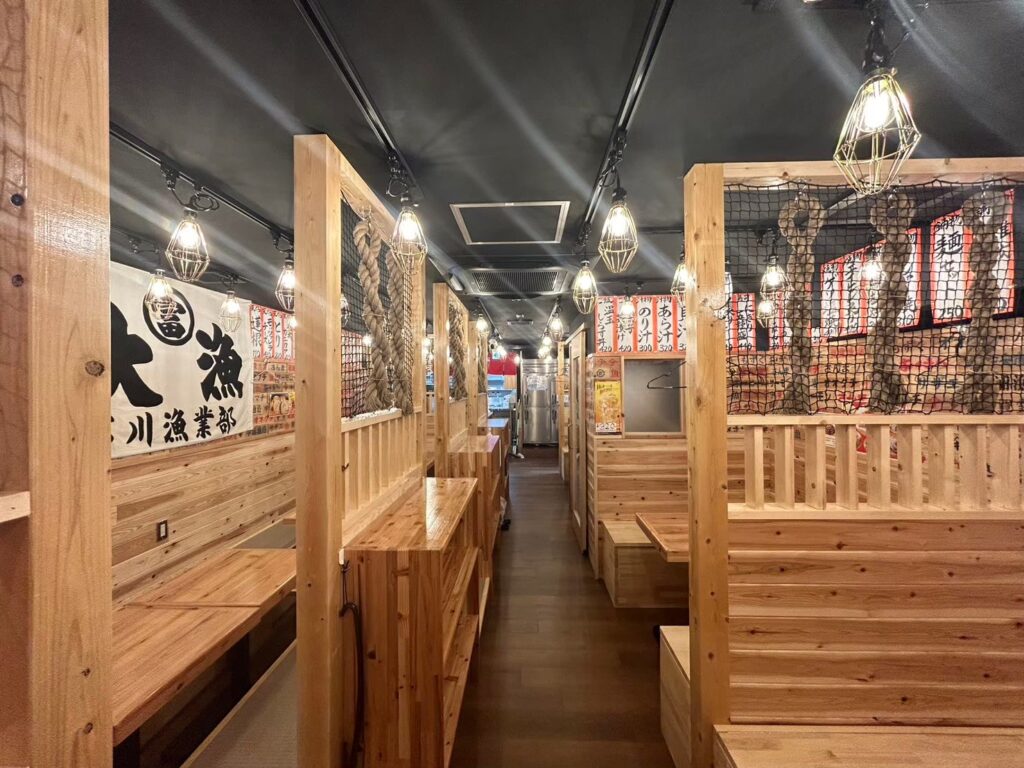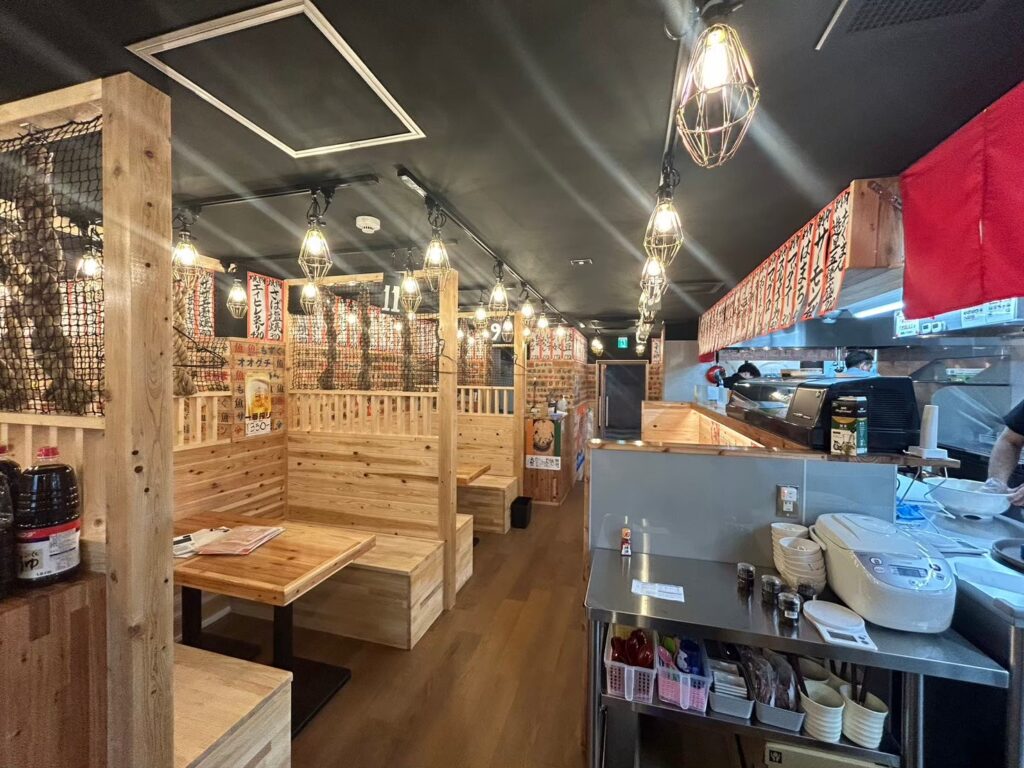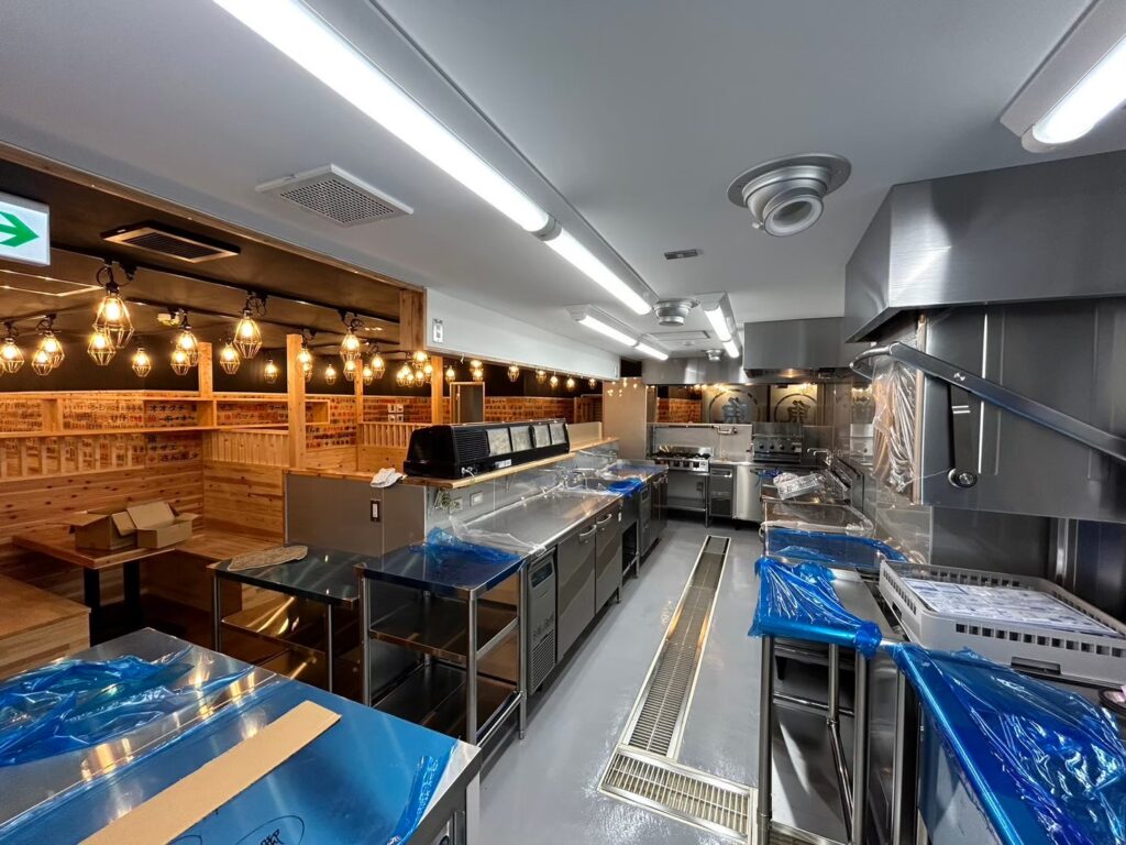 内装は木質を基調とし、居酒屋らしい活気を演出しながらも、落ち着いて過ごせる雰囲気を意識しました。客席レイアウトはスタッフ動線の効率化を考慮し、配膳や片付けがスムーズに進むよう工夫しています。厨房は清掃性と安全性を重視した施工とし、日々の店舗運営を支える堅実な仕上がりとなっています。